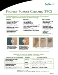 A PPC particle is 74% pore space with 39% capillary (water) pores and 35% non-capillary (air) pores. Blended with sand in a greens mix, Profile Porous Ceramics improve water- and nutrient-holding capabilities, increase oxygen levels at the root zone, and facilitate drainage when soils are saturated. The particles also hold water and release it as needed to the plant, delaying the need for irrigation. The Greens Grade particle is ideal for sand-based construction and is available in two distinct colors–Natural for use in construction, and Emerald to topdress and disguise worn areas in turf.
